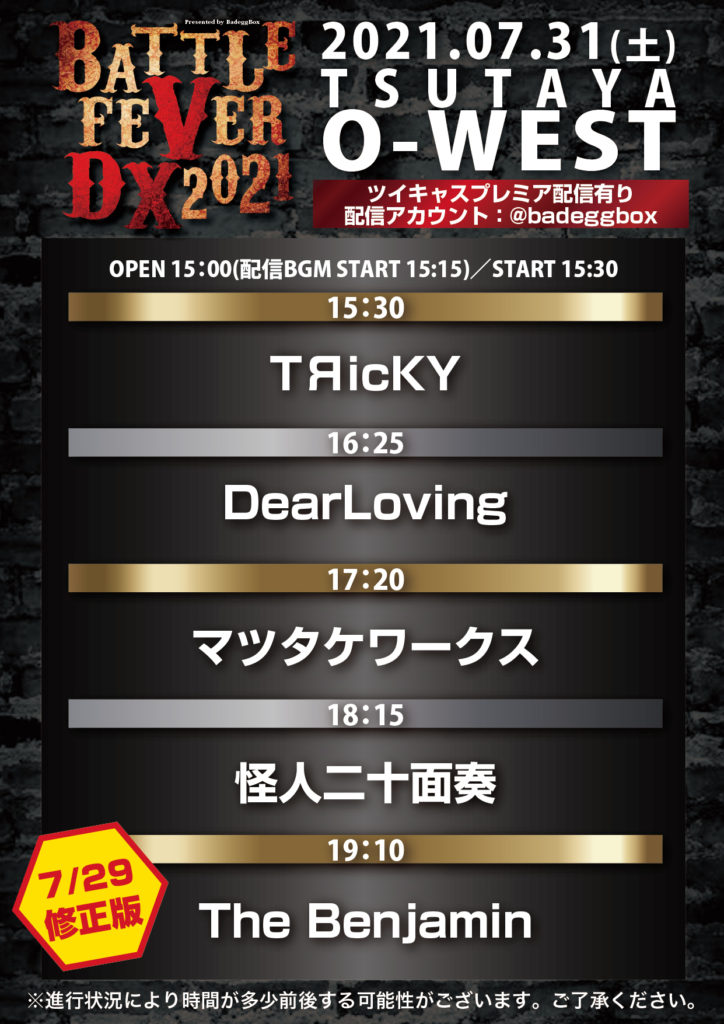 出演:The Benjamin/怪人二十面奏/マツタケワークス/DearLoving/TЯicKY
