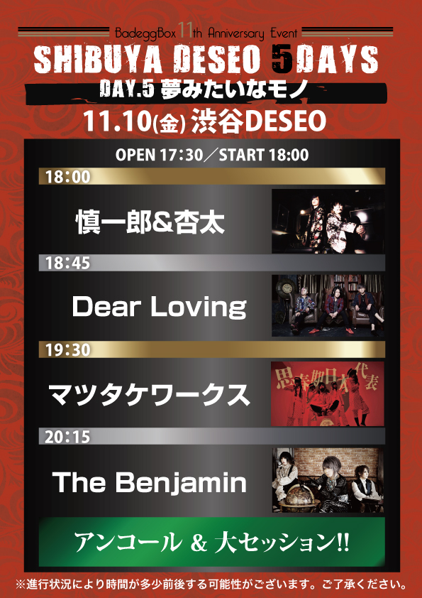 ※進行状況により時間が多少前後する可能性がございます。ご了承ください。