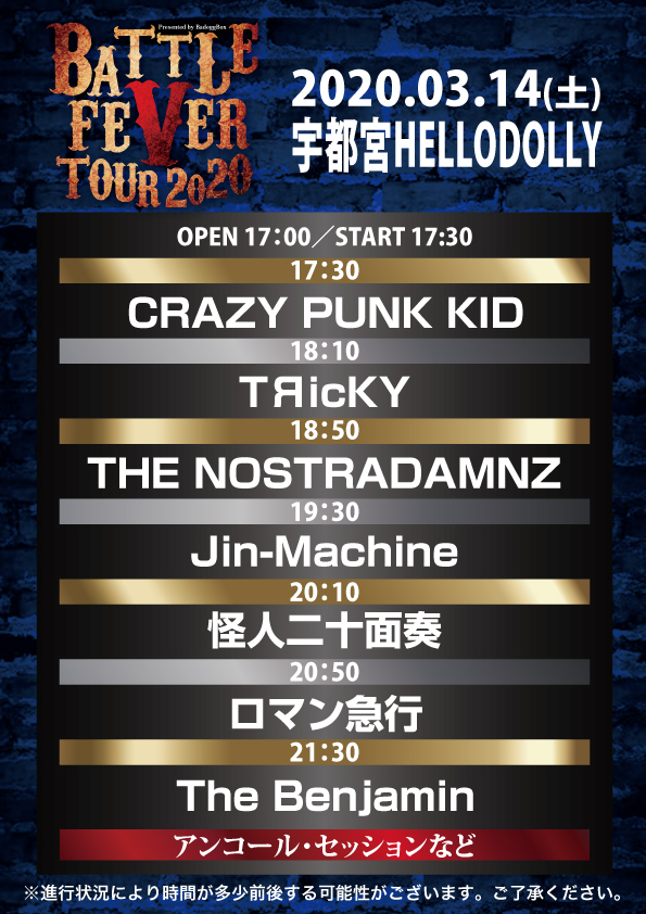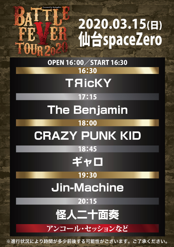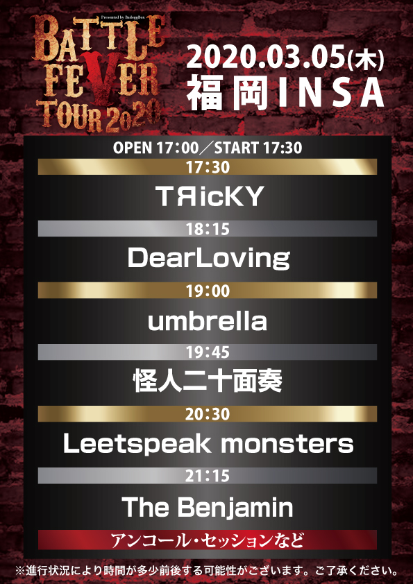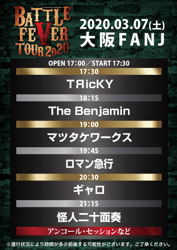 「BATTLE FEVER TOUR2020」タイムテーブル公開